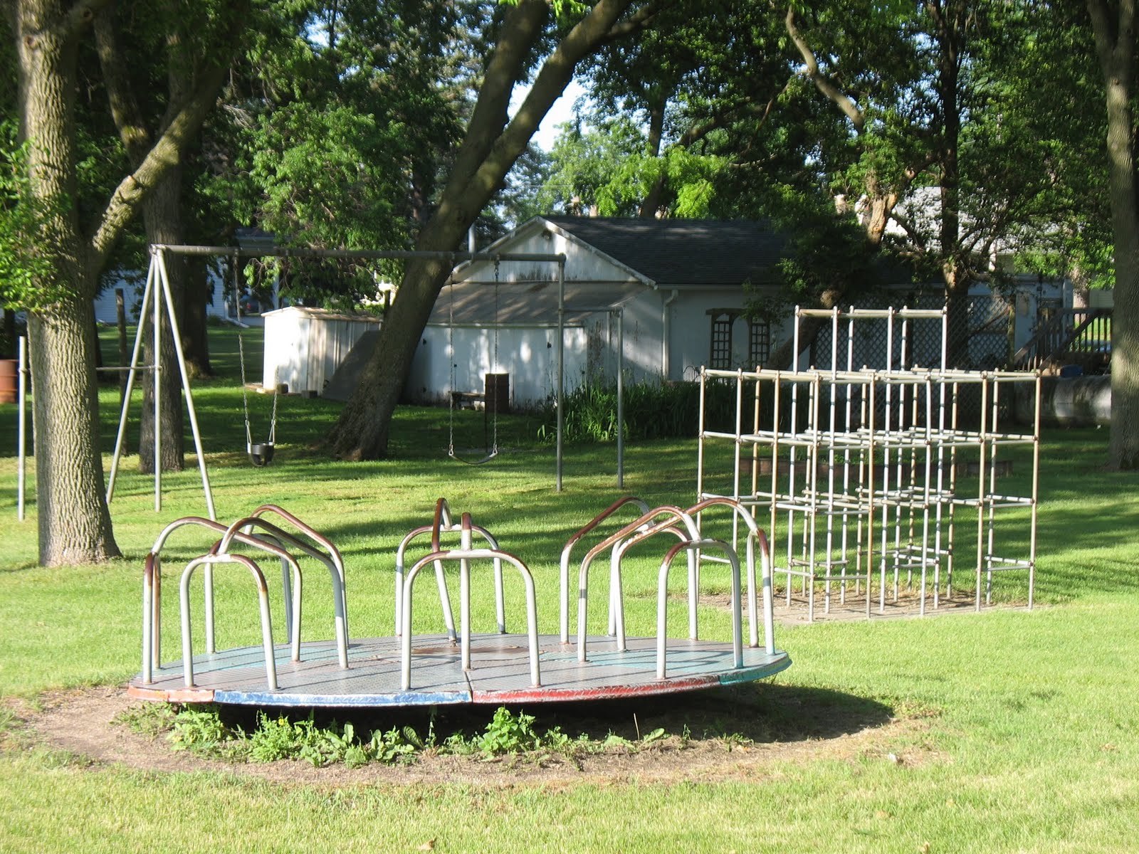 This looks just like the little playground where I grew up. I suppose there were kids with the usual bruises and occasional broken bone, but no one got seriously injured.